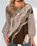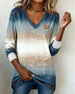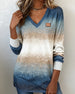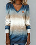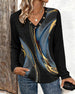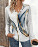 Tryckt Casual Topp Med V-Ringning Och Långa Ärmar