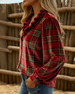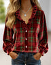 SPECIFIKATIONER Topptyp: Toppar Stil: Elegant,Vintage Material: Sammet Tillfälle: Dagligen,Fest Urringning: V-hals_V Mönstertyp: Pläd Typ av ärm: Puffärm Ärmlängd: Långärmad Passform typ: Vanlig Säsong: Vår,Höst,Vinter Detaljer: Knappar,Rufsad Paketet innehåller: 1 x Topp STORLEKSTABELL(cm) Storlek Byst Längd S 97 65 M 101 66.5 L 105 6...
