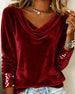SPECIFIKATIONER Topptyp: Toppar Stil: Enkel Material: Sammet Tillfälle: Dagligen Urringning: Draperad Krage Mönstertyp: Paljett Typ av ärm: Vanlig ärm Ärmlängd: Långärmad Passform typ: Vanlig Säsong: Höst,Vinter Paketet innehåller: 1 x Topp STORLEKSTABELL(cm) Storlek Byst Längd S 97 65 M 101 66.5 L 105 68 XL 111 69.5 2XL 117 71 3...