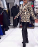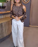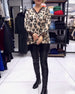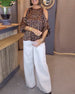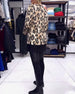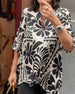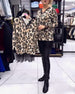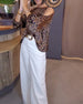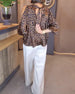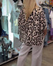 Blus avslappnad v-ringad spetspanel i leopardmönstret