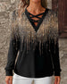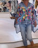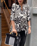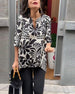 Blus V-Ringning Långärmad Tryckt Avslappnad