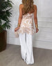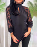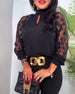 Blus Med Spetsdetalj Rund Hals Tryckt