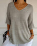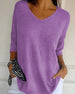 💖 Enfärgad Stickad Topp Med V-Ringning