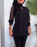 Moderiktig enfärgad blus med stativ krage patchwork och ihålig