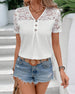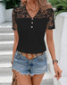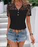 SPECIFIKATIONER Topptyp: Blusar Stil: Enkel Material: Spandex,Polyester Tillfälle: Dagligen Urringning: V-hals_V Mönstertyp: Enfärgade Typ av ärm: Vanlig ärm Ärmlängd: Kortärmad Passform typ: Vanlig Säsong: Vår,Sommar Detaljer: Lappverk,Knappar,Spets Paketet innehåller: 1 x Blus STORLEKSTABELL(cm) Storlek Byst Längd S 95 70 M 99 71 ...