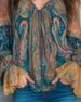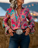 Bohemisk V-Ringad Blus Med Utsvängda Ärmar