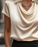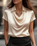 Blus Satäng Drapead Hals Kortärm