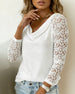 SPECIFIKATIONER Topptyp: Toppar Stil: Enkel Material: Bomullsblandningar, Spets Tillfälle: Dagligen Urringning: V-hals_V Mönstertyp: Enfärgade Typ av ärm: Vanlig ärm Ärmlängd: Långärmad Passform typ: Vanlig Säsong: Vår, Sommar, Höst Detaljer: Lappverk, Urgröpande Paketet innehåller: 1 x Topp STORLEKSTABELL(cm) Storlek Byst Längd ...