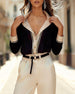Blus V-Ringning Kontrasterande Långärmad