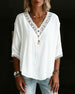 Blus Spets V-Ringning Trekvartsärm