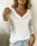 V-ringad spetspanel långärmad topp