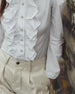 SPECIFIKATIONER Topptyp: Blusar Stil: Chic Material: Bomullsblandningar Tillfälle: Dagligen Urringning: Skjortkrage Mönstertyp: Enfärgade Typ av ärm: Volangärm Ärmlängd: Långärmad Passform typ: Vanlig Säsong: Vår,Höst,Vinter Detaljer: Rufsad Paketet innehåller: 1 x Blus STORLEKSTABELL(cm) Storlek Byst Längd S 97 65 M 101 66.5 L 105 68 ...