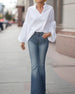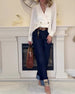 Blus Ruffle V-Ringning Denim