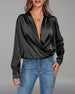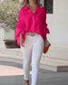 Blus Långärmad V-Ringning Casual