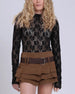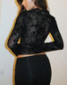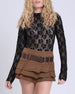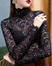 Topp Elegant Enfärgad Halv Halsringning Långärmad Spets