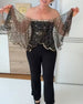 ✤ Den perfekta följeslagaren året runt Mjuk, snygg och mångsidig – det perfekta lager-på-lager-plagget! ✤ En storlek passar alla eftersom det är en axelbandslösning som är utformad för att vara något lös Storlek: En storlek Material: Dragkedja: Material: chiffong, polyestertyg, paljetter, pärlor Size Byst En storlek 90-130 ...