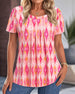 Blus V-Ringad Ledig Mönstrad Kortärmad