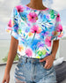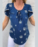 SPECIFIKATIONER Topptyp: Blusar Stil: Enkel Material: Bomullsblandningar Tillfälle: Dagligen Urringning: Rund nacke Mönstertyp: Tryckt Typ av ärm: Kronbladsärm Ärmlängd: Kortärmad Passform typ: Vanlig Säsong: Vår,Sommar Detaljer: Snöra upp Paketet innehåller: 1 x Blus STORLEKSTABELL(cm) Storlek Byst Längd S 97 65 M 101 66.5 L 105 68 ...