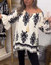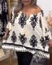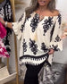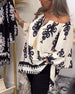 SPECIFIKATIONER Topptyp: Blusar Stil: Enkel, Semester, Chic Material: Bomullsblandningar Tillfälle: Dagligen, Semester Urringning: Off Shoulder Mönstertyp: Tryckt Typ av ärm: Volangärm Ärmlängd: 3/4 ärm Passform typ: Lös Säsong: Vår, Sommar Paketet innehåller: 1 x Blus STORLEKSTABELL(cm) Storlek Byst Längd S 95 68 M 100 69.5 L 105 71 ...