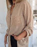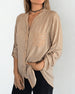 Topp Lång Ärm V-Hals Knapp Ner