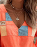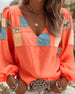 Blus V-Hals Kontrast Tryck