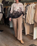 Blus Knyt Lång Ärm Placerings Tryck