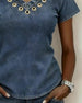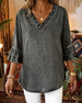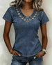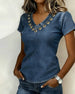 Rynkad Kortärmad V-Ringad Denimblus