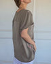 Blus Slim Passform Drapedad Hals Kort Ärm