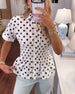 SPECIFIKATIONER Topptyp: Blusar Stil: Enkel Material: Bomullsblandningar Tillfälle: Dagligen Urringning: Slag Mönstertyp: Polka prickig Typ av ärm: Vanlig ärm Ärmlängd: Kortärmad Passform typ: Vanlig Säsong: Vår,Sommar Detaljer: Blandade Paketet innehåller: 1 x Blus STORLEKSTABELL(cm) Storlek Byst Längd S 97 65 M 101 66.5 L 105 68 XL...