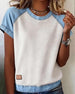 Topp Avslappnad Rund Hals Sammansatt Denim