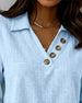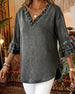 Blus Veckad Knapp Rund Hals