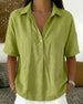 SPECIFIKATIONER Topptyp: Blusar Stil: Enkel Material: Bomull och linne Tillfälle: Dagligen Urringning: Draperad Krage Mönstertyp: Enfärgade Typ av ärm: Vanlig ärm Ärmlängd: Kortärmad Passform typ: Vanlig Säsong: Vår,Sommar Detaljer: Knappar Paketet innehåller: 1 x Blus STORLEKSTABELL(cm) Storlek Byst Längd S 97 65 M 101 66.5 L 105 68 ...