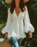 SPECIFIKATIONER Topptyp: Blusar Stil: Elegant Material: Bomullsblandningar Tillfälle: Dagligen Urringning: V-hals_V Mönstertyp: Enfärgade Typ av ärm: Lykthylsa Ärmlängd: Långärmad Passform typ: Vanlig Säsong: Vår,Sommar Detaljer: Rufsad Paketet innehåller: 1 x Blus STORLEKSTABELL(cm) Storlek Byst Längd S 97 65 M 101 66.5 L 105 68 XL ...
