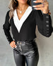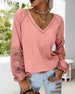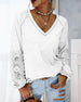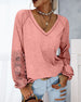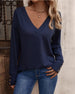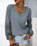 SPECIFIKATIONER Topptyp: Toppar Stil: Elegant,Enkel Material: Bomullsblandningar Tillfälle: Dagligen Urringning: V-hals Mönstertyp: Färgblock Typ av ärm: Vanlig ärm Ärmlängd: Långärmad Passform typ: Vanlig Säsong: Vår, Höst Detaljer: Lappverk, Spets Förpackningen innehåller: 1 x Topp STORLEKSTABELL(cm) Storlek Byst Längd S 94 7...
