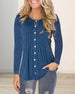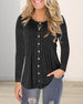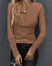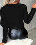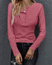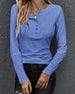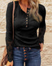 Enfärgad långärmad topp med v-ringad knapp