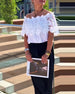 Veckad ledig topp med kontrasttryck