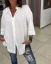SPECIFIKATIONER Topptyp: Skjorta Stil: Enkel, Kontor Material: Bomullsblandningar Tillfälle: Dagligen, Arbete Urringning: Slag Mönstertyp: Enfärgade Typ av ärm: Tappad axel Ärmlängd: 3/4 ärm Passform typ: Vanlig Säsong: Vår, Sommar, Höst Detaljer: Knappar Paketet innehåller: 1 x Skjorta STORLEKSTABELL(cm) Storlek Byst Längd S 95 68 M 100...