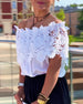 SPECIFIKATIONER Topptyp: Blusar Stil: Enkel Material: Bomullsblandningar Tillfälle: Dagligen Urringning: Off Shoulder Mönstertyp: Enfärgade Typ av ärm: Vanlig ärm Ärmlängd: Kortärmad Passform typ: Vanlig Säsong: Vår,Sommar Detaljer: Urgröpande,Spets Paketet innehåller: 1 x Blus STORLEKSTABELL(cm) Storlek Byst Längd S 97 65 M 101 66.5 L...
