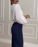 Moderiktig enfärgad blus med V-ringad lyktaärm