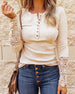 SPECIFIKATIONER Topptyp: Toppar Stil: Tillfällig Material: Bomull, Polyester Tillfälle: Dagligen Urringning: Rund nacke Mönstertyp: Enfärgade Typ av ärm: Vanlig ärm Ärmlängd: Långärmad Passform typ: Vanlig Säsong: Vår, Höst Detaljer: Lappverk, Knappar, Spets Förpackningen innehåller: 1 x Topp STORLEKSTABELL(cm) ...