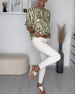 Elegant blus med axelband och tryck