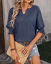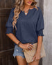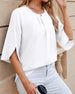 SPECIFIKATIONER Topptyp: Blusar Stil: Enkel, Kontor Tillfälle: Dagligen, Arbete Urringning: Slag Mönstertyp: Enfärgade Typ av ärm: Vanlig ärm Ärmlängd: 3/4 ärm Passform typ: Vanlig Material: Polyester Säsong: Vår, Sommar, Höst Detaljer: Blandade Paketet innehåller: 1 x Blus STORLEKSTABELL(cm) Storlek Byst Längd Armlängd Axlar ...