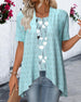 SPECIFIKATIONER Topptyp: Blusar Stil: Enkel Material: Bomullsblandningar Tillfälle: Dagligen Urringning: Rund nacke Mönstertyp: Tryckt Typ av ärm: Vanlig ärm Ärmlängd: Kortärmad Passform typ: Vanlig Säsong: Vår,Sommar Detaljer: Urgröpande,Två falska bitar Paketet innehåller: 1 x Blus STORLEKSTABELL(cm) Storlek Byst Längd S 97 65 M 101 66...