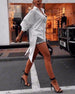 FUNKTIONER Dragkedja bak: Den eleganta dragkedjan bak ger en modern touch, gör den lätt att bära och erbjuder en sömlös passform. Asymmetrisk design: Det oregelbundna, asymmetriska snittet ger en chic och modern look som skiljer dig från mängden. Turn-down krage: Den klassiska turn-down kragen ger en tidlös elegans, lämplig för både vardagli...