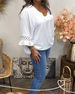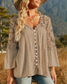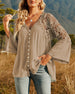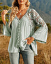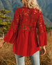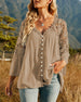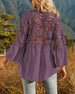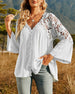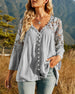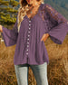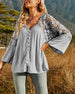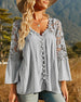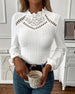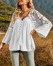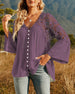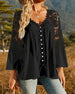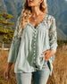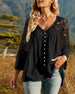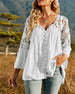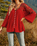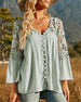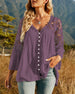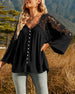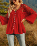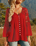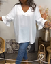 SPECIFIKATIONER Topptyp: Blusar Stil: Casual Material: Akryl, Polyester Tillfälle: Dagligen Urringning: V-hals_V Mönstertyp: Enfärgade Typ av ärm: Volangärm Ärmlängd: Långärmad Passform typ: Vanlig Säsong: Vår, Sommar, Höst Detaljer: Lappverk, Knappar, Spets Förpackningen innehåller: 1 x Blus STORLEKSTABELL(cm) Storlek B...