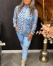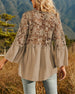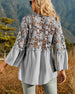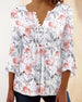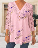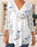 SPECIFIKATIONER: Stil: Casual, Elegant Krage: V-ringad Ärmlängd: Trekvartsärmar Skjorta Längd: Medium Detalj: Spets, knappar Mönster: Blommönster Process: Tryck Passform: Lös STORLEKSTABELL Storlek(cm) Byst Längd Axlar Ärm Manschett S 94 73 36.5 45 31 M 98 74 37.5 46 32 L 102 75 38.5 47 33 XL 106 76 39.5 48 34 2XL 110 77 40.5 49 ...