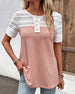 SPECIFIKATIONER Topptyp: Toppar Stil: Enkel Material: 100% Polyester Tillfälle: Dagligen Urringning: Rund nacke Mönstertyp: Randig Typ av ärm: Tappad axel Ärmlängd: 3/4 ärm Passform typ: Vanlig Säsong: Vår, Sommar, Höst Detaljer: Lappverk Paketet innehåller: 1 x Topp STORLEKSTABELL(cm) Storlek Byst Längd S 110 65 M 115 66.5 L 1...