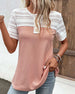 SPECIFIKATIONER Topptyp: Blusar Stil: Enkel Material: Bomullsblandningar Tillfälle: Dagligen Urringning: Rund nacke Mönstertyp: Enfärgade Typ av ärm: Raglan ärm Ärmlängd: Kortärmad Passform typ: Vanlig Säsong: Vår,Sommar Detaljer: Urgröpande,Spets Paketet innehåller: 1 x Blus STORLEKSTABELL(cm) Storlek Byst Längd S 97 65 M 101 66.5 L 1...