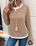 Enkelt Topp Med Rund Hals, Entydig Färg Och Långa Ärmar