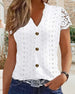 SPECIFIKATIONER Topptyp: Blusar Stil: Enkel Material: Bomullsblandningar Tillfälle: Dagligen Urringning: V-hals_V Mönstertyp: Enfärgade Typ av ärm: Vanlig ärm Ärmlängd: Kortärmad Passform typ: Vanlig Säsong: Vår,Sommar Detaljer: Knappar,Urgröpande Paketet innehåller: 1 x Blus STORLEKSTABELL(cm) Storlek Byst Längd S 97 65 M 101 66.5 L 1...